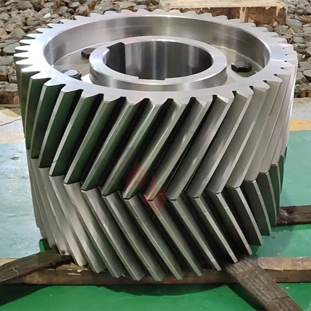 In the field of mining machinery, helical gears are highly favored for their excellent performance. In addition to the advantages mentioned above, modern helical gears also use advanced material processing technologies, such as surface hardening, to further enhance wear resistance and fatigue resistance. In addition, in order to overcome the axial thrust problem of traditional helical gears, engineers have developed a double helical gear design, that is, two helical gears with opposite rotation directions are installed on the same shaft to achieve the effect of offsetting each other’s axial forces.