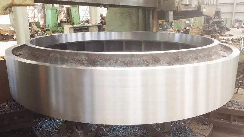 The finishing process of casting rotary kiln tyre mainly includes: heat treatment of casting blanks to optimize material properties, then through turning, milling, grinding and other processes to ensure dimensional accuracy and surface finish, and finally flaw detection and quality inspection to ensure that the product meets the design requirements and use standards.