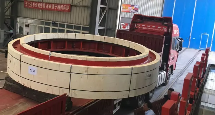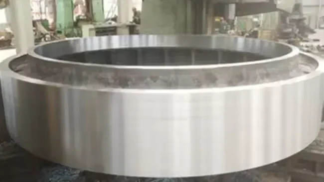 The rotary kiln tyre (riding ring) transmits the full weight of the kiln shell—including refractory bricks, internal components, and materials—to the supporting rollers, ensuring smooth and stable rotation. It also enhances the radial stiffness of the shell for improved structural integrity. While cast tyres are typically made from high-quality cast steel such as ZG45 or ZG42CrMo, forged rotary kiln tyres offer superior performance. Through the forging process, forged tyres achieve refined grain structure and denser metal composition, resulting in higher strength, toughness, and wear resistance. This makes forged kiln tyres the preferred choice for ultra-large and heavy-duty rotary kilns in demanding industrial applications.