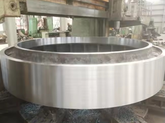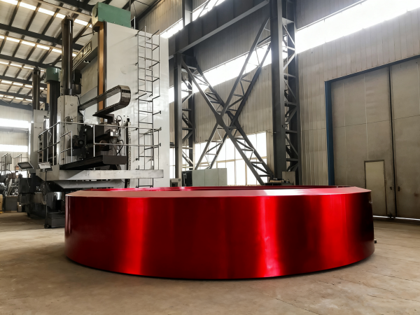 Normalizing + quenching and tempering are applied. Normalizing refines the structure, and quenching and tempering (quenching + high-temperature tempering) enable the rotary kiln tyre to obtain comprehensive mechanical properties of “high strength + high toughness”, with the hardness uniformity controlled within HB±15.