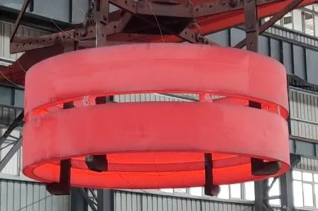 To achieve superior structural integrity and refined grain formation, rotary kiln tyres are forged using advanced electro-hydraulic hammers or quick forging machines—such as 10,000-ton forging equipment—where the process is precisely tailored to the tyre’s dimensions through a sequence of forging steps including upsetting, drawing out, rounding, punching, and hole expanding.
