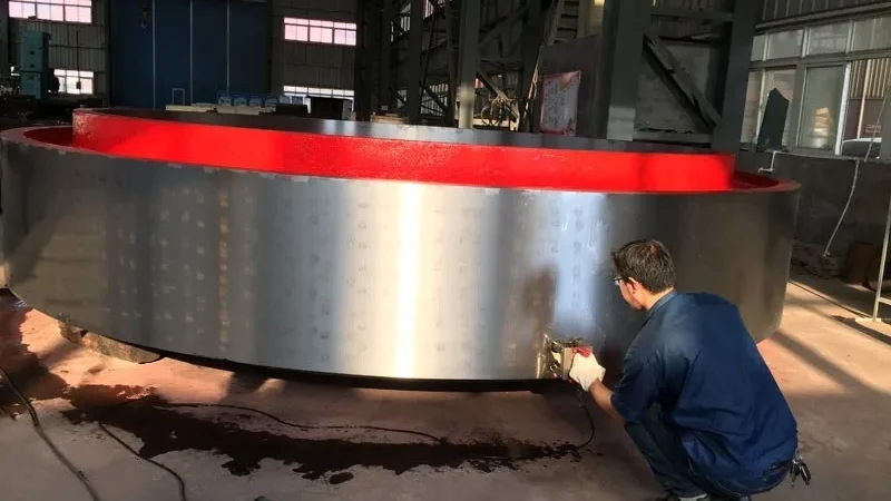 Following forging, the rotary kiln tyre undergoes heat treatment processes including normalizing and quenching and tempering—where normalizing further refines the microstructure, and quenching combined with high-temperature tempering delivers an optimal balance of high strength and high toughness, ensuring excellent comprehensive mechanical properties with hardness uniformity controlled within HB±15.