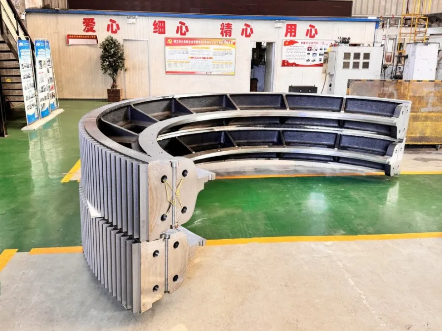 Two segment girth gear refers to a complete gear ring is divided into two parts for manufacturing, and then it is spliced together to form a whole during installation. This design is mainly used in applications where it is not possible to manufacture the entire ring at one time due to size limitations, processing difficulties, or transportation difficulties. It is mainly used for: