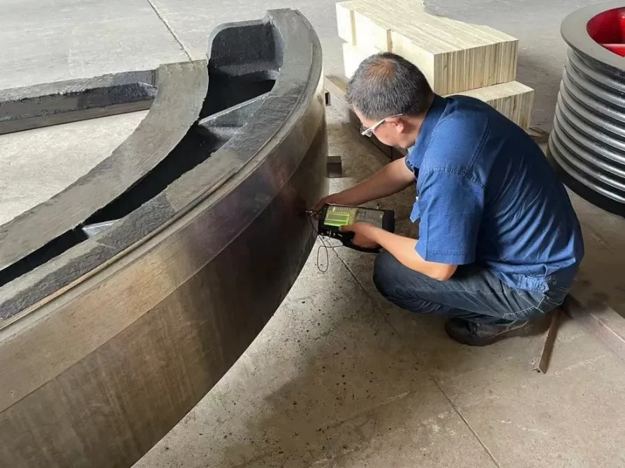 The ultrasonic test of the girth gear can find whether there are defects inside the casting, such as cracks, pores, inclusions, improve the safety of the product and extend the service life of the product