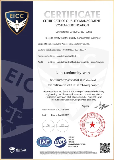 | Heat Treatment | Quenching + Tempering (core: 30–40 HRC) + Surface Hardening (58–62 HRC) via carburizing/nitriding |