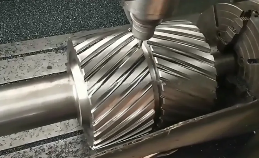 This stage focuses on shaping the basic contour of the herringbone gear shaft body. A CNC lathe is used to perform cylindrical turning, end face leveling, and shaft shoulder machining on the pretreated forging. This precisely controls the basic dimensions of the diameter and length of each section of the shaft body—for example, the initial forming of key parts such as the journal and step surface. Considering potential deformation during subsequent heat treatment, a 3-5mm machining allowance is reserved in areas such as the tooth profile processing zone and precision mating surface at this stage. This prevents the final dimensional deviation from exceeding the standard range while reducing the cutting amount during finish machining to improve processing efficiency.