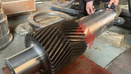 First, 42CrMo alloy structural steel round billets are selected as raw materials. A spectral analysis is conducted to strictly test the content of elements—with carbon (0.38%-0.45%) and chromium (0.9%-1.2%) meeting standards—to ensure material qualification. Subsequently, the round billets are heated to the forging temperature range of 1100-1200°C. Free forging or die forging is adopted for pressing, which refines the metal grains and densifies the structure. Meanwhile, a rough blank shape matching the herringbone gear shaft profile is pre-forged, with a 10-15mm allowance reserved for subsequent processing. This enhances the shaft’s impact and fatigue resistance, preventing structural fractures during later use. After forging, the rough blank undergoes slow cooling to eliminate forging stress and avoid cracking, ultimately producing a forging base material for the herringbone gear shaft that meets dimensional requirements.Then, ultrasonic testing is performed to check for internal defects such as looseness and inclusions in the forging, ensuring no hidden damage in the base material.