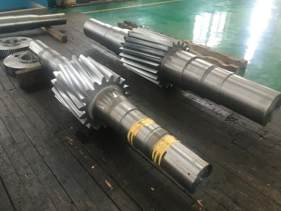 Large modulus heavy helical gear shafts usually use high-strength alloy steel (such as 42CrMo, 35CrMo, 20CrMnTiH, etc.) to meet high load and wear resistance requirements. Ensure that the raw materials are free of inclusions, pores or cracks to avoid defects during the forging process. Use large forging equipment (such as 10,000-ton hydraulic presses or hammer forging machines) to provide sufficient pressure to form large modulus gear shafts. Ensure that the equipment can withstand the weight of the parts and the impact force required for forging. The forging ratio of large modulus heavy helical gear shafts is usually 2~4, and the specific value needs to be adjusted according to the material properties and part shape. A forging ratio that is too small may cause uneven internal structure of the material, while a too large ratio will increase energy consumption and cost.